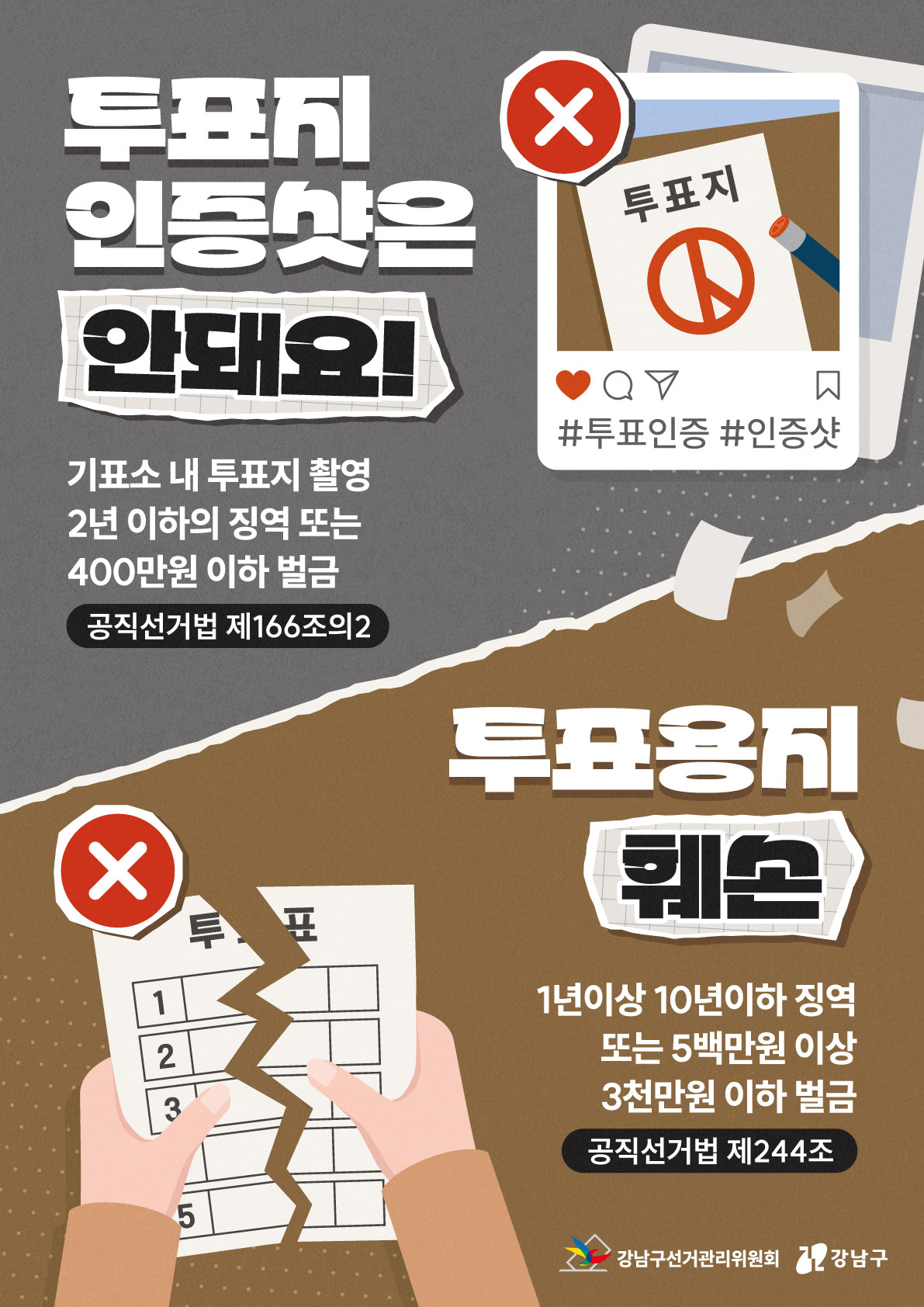 투표 시 반드시 신분증을 지참해야 하며, 허용되는 신분증은 주민등록증, 운전면허증, 여권 등입니다. 투표소 내에서는 사진 촬영이 금지되며, 투표의 비밀이 보장되어야 합니다.