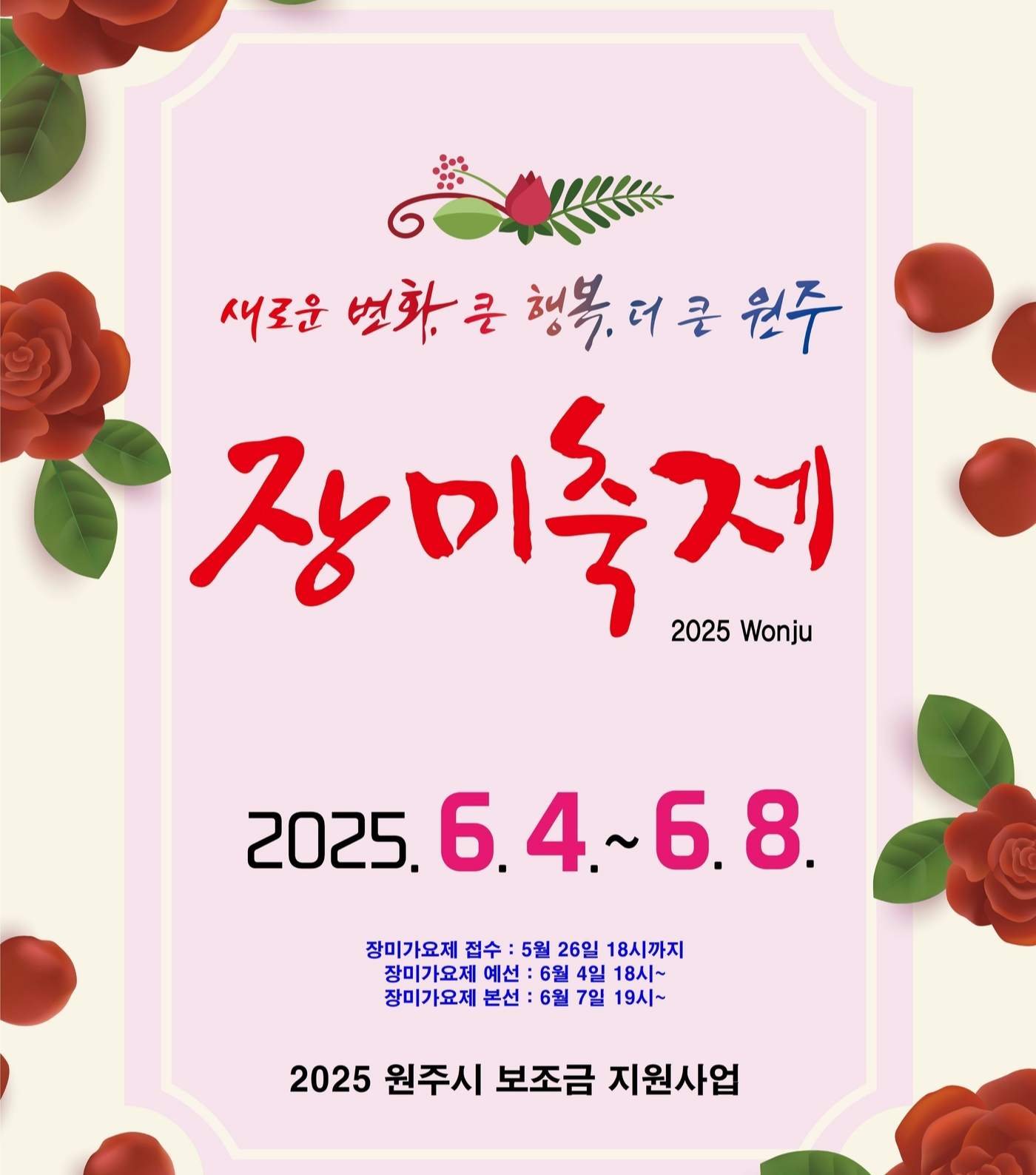 #원주장미축제 #2025축제 #장미공원 #원주여행 #장미축제 #문화행사 #가족나들이 #도심속힐링 #축제 #원주명소 #장미구경 #봄나들이 #축제일정 #원주가볼만한곳 #데이트코스