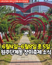 꽃과 문화가 어우러진 원주 장미축제가 2025년 6월 4일부터 8일까지 단계동 장미공원에서 화려하게 펼쳐집니다. 이번 축제는 30여 종 4000여 주의 장미가 만개한 가운데, 다채로운 문화 행사와 함께 진행되어 더욱 특별한 경험을 선사할 예정입니다.